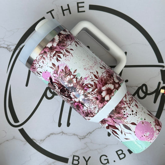 40oz Stainless Steel Tumbler | Insulated Drinkware | Pastel Mandala Flowers