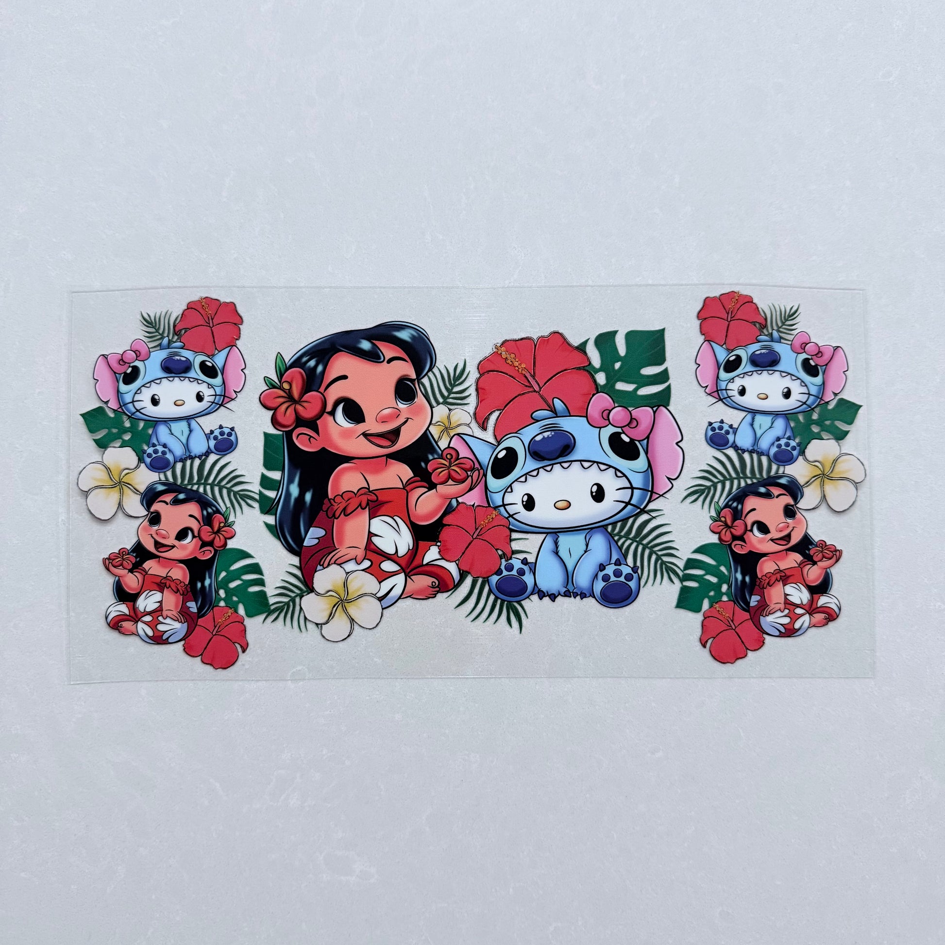 Single Sided UV DTF Wrap 16oz Tumbler Transfer (24cm x 11cm) Blue Alien kitty tropical