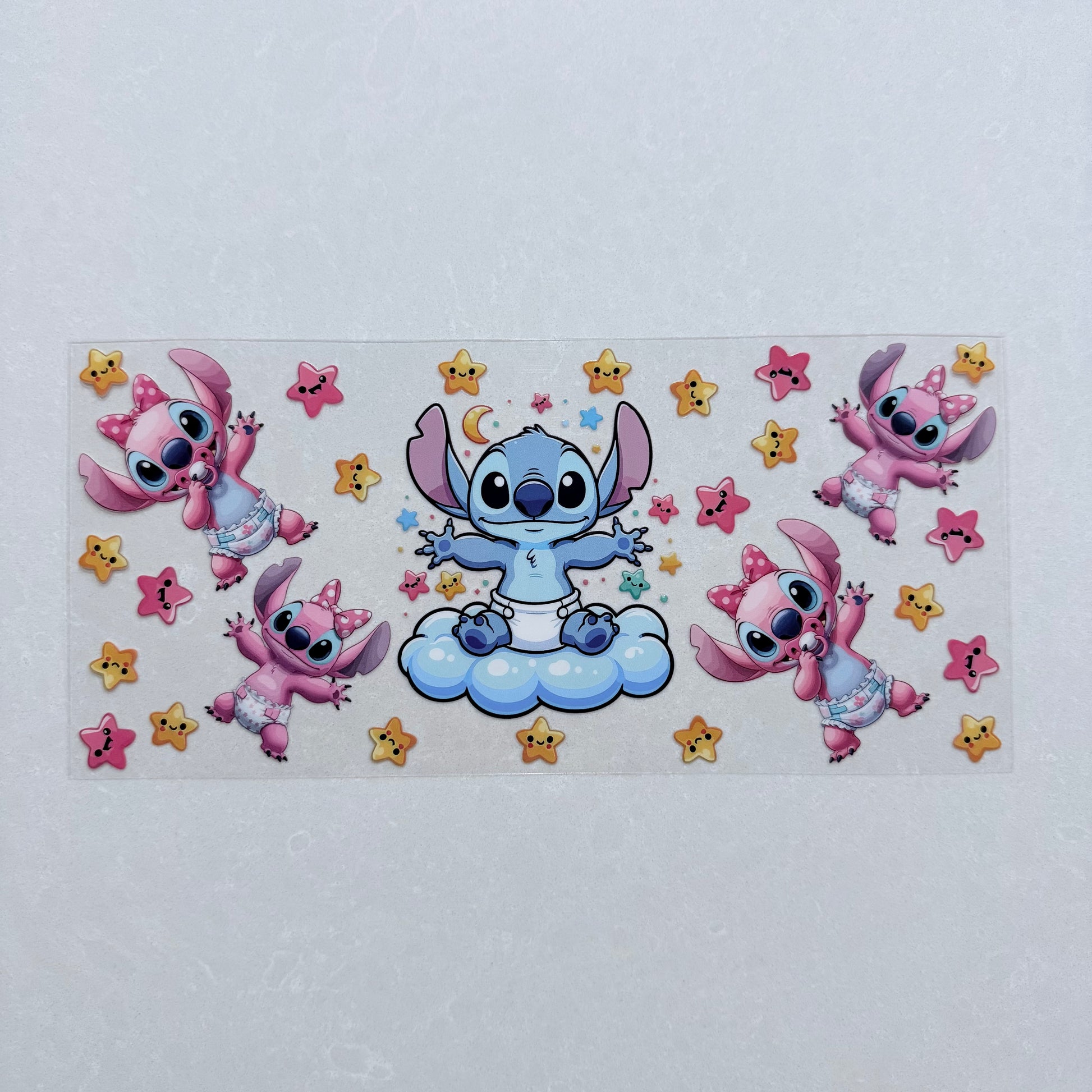 Single Sided UV DTF Wrap 16oz Tumbler Transfer (24cm x 11cm) Blue & Pink Alien baby with stars