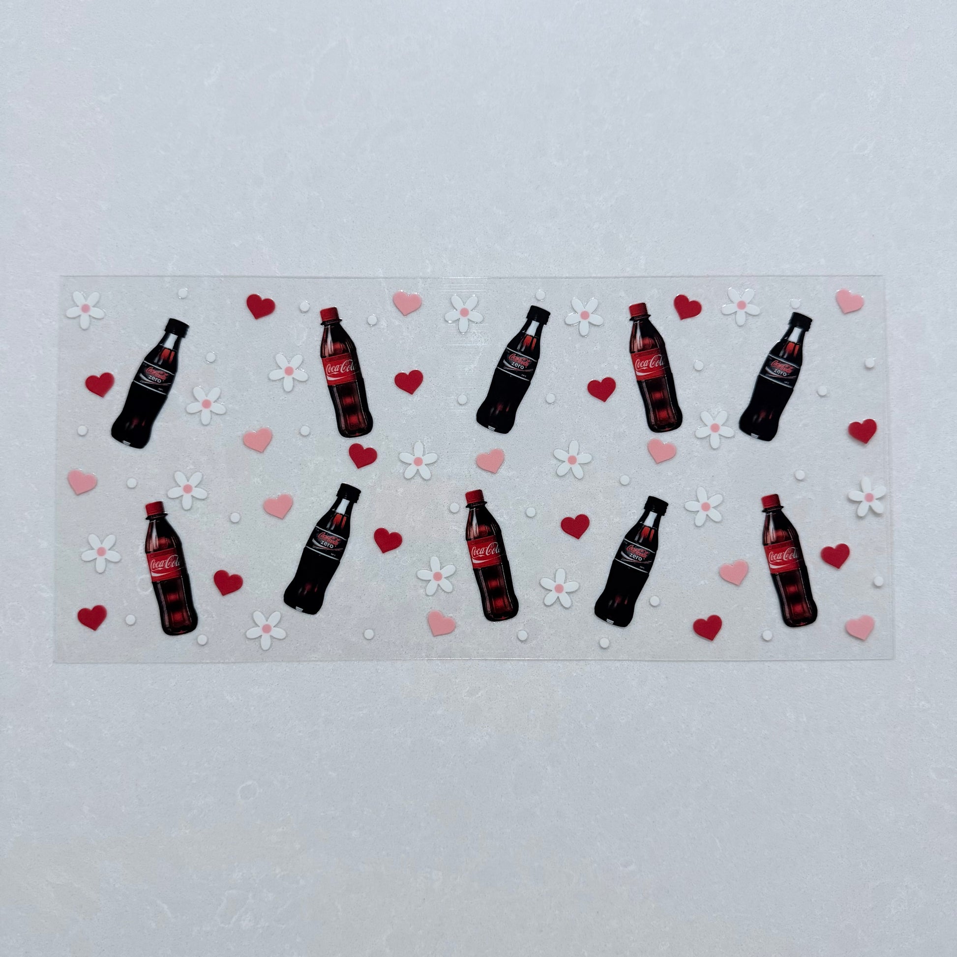 Single Sided UV DTF Wrap 16oz Tumbler Transfer (24cm x 11cm) Coke Zero Hearts and daisy
