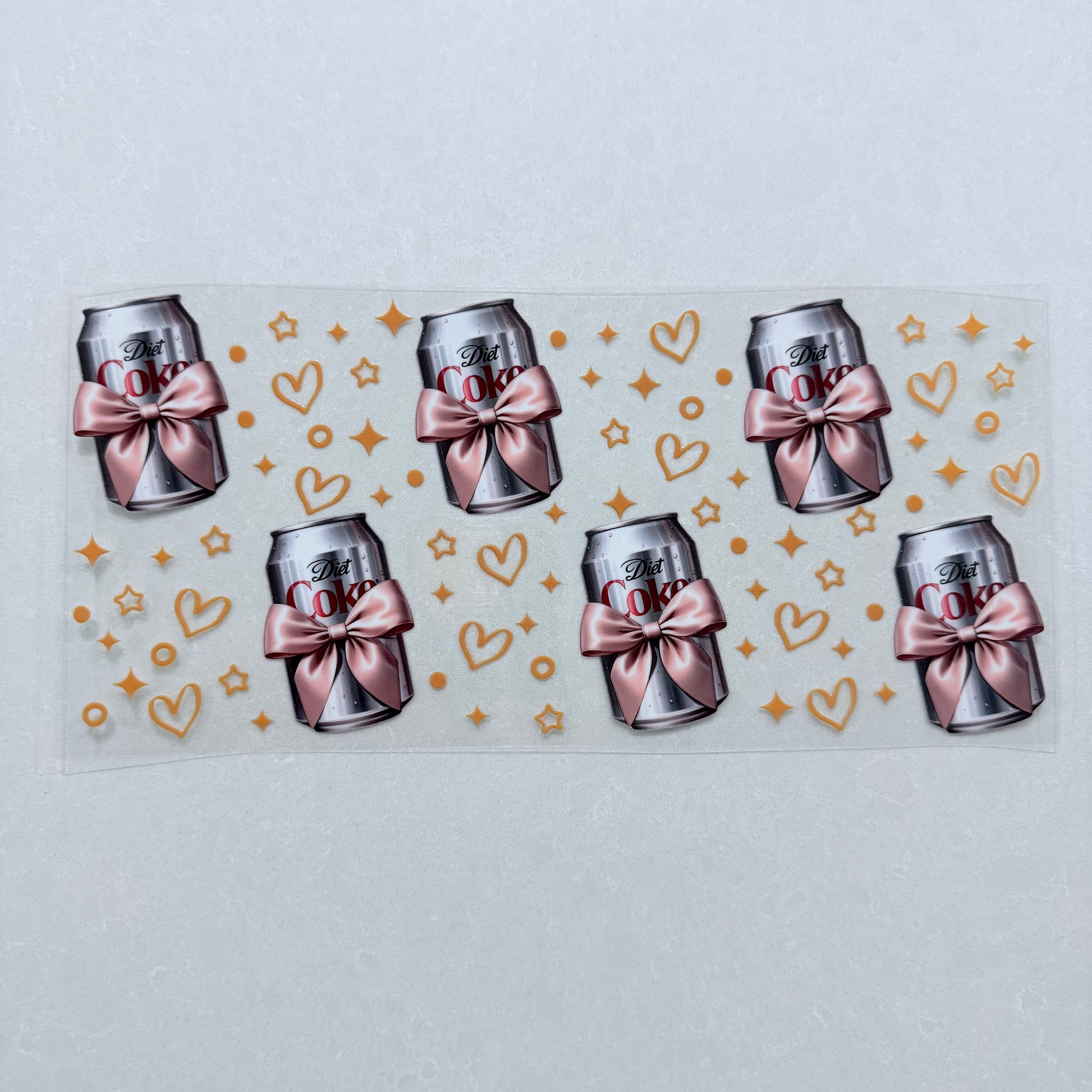Single Sided UV DTF Wrap 16oz Tumbler Transfer (24cm x 11cm) Diet cola yellow hearts