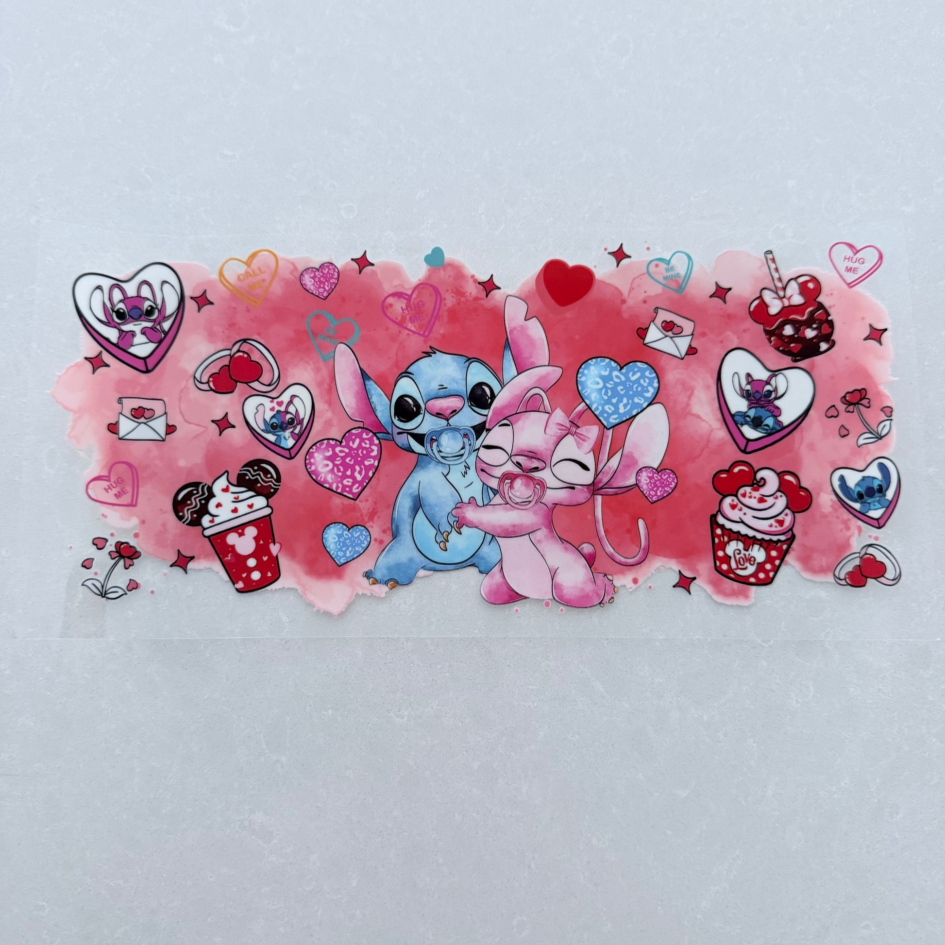 Single Sided UV DTF Wrap 16oz Tumbler Transfer (24cm x 11cm) blue & pink alien love