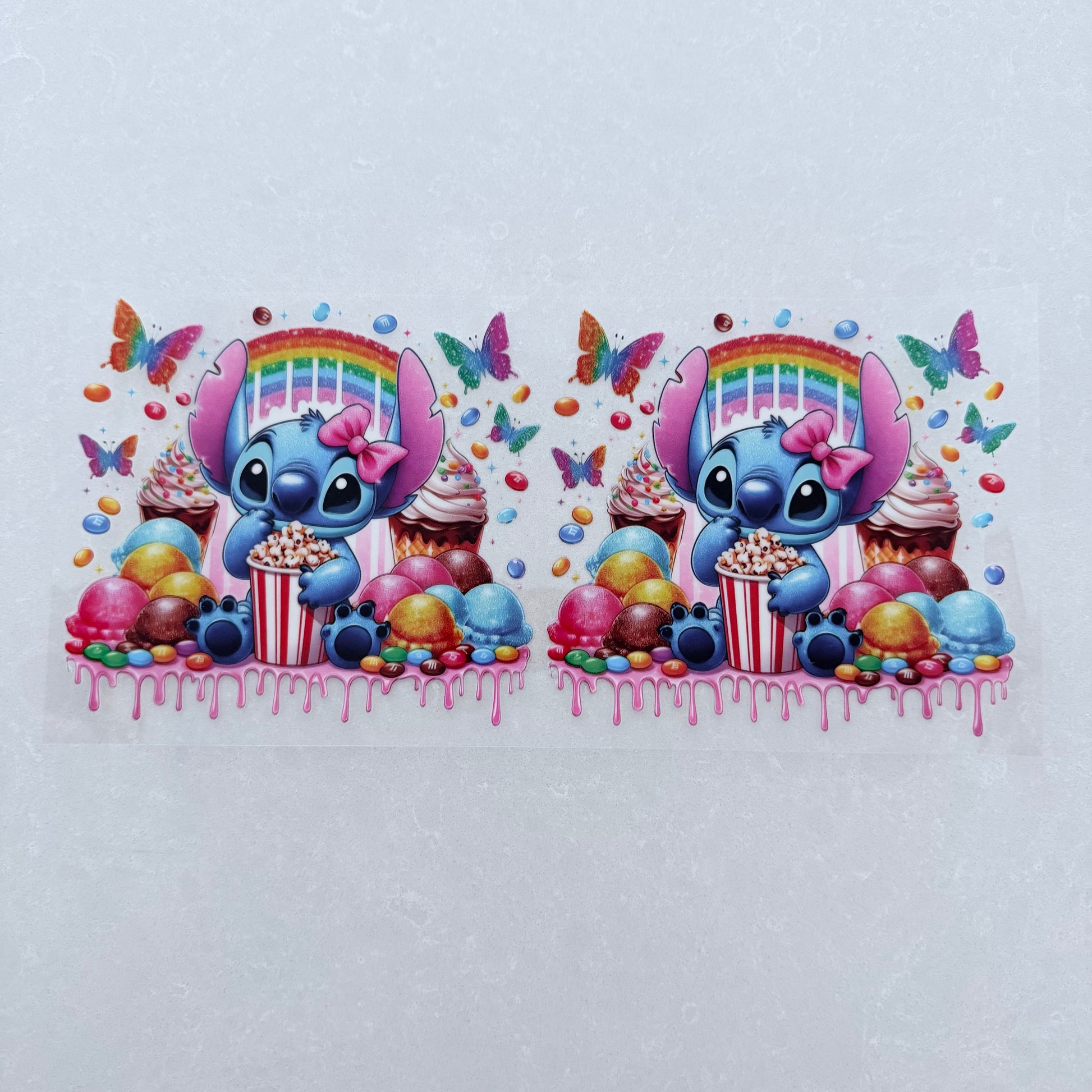 Single Sided UV DTF Wrap 16oz Tumbler Transfer (24cm x 11cm) blue alien popcorn