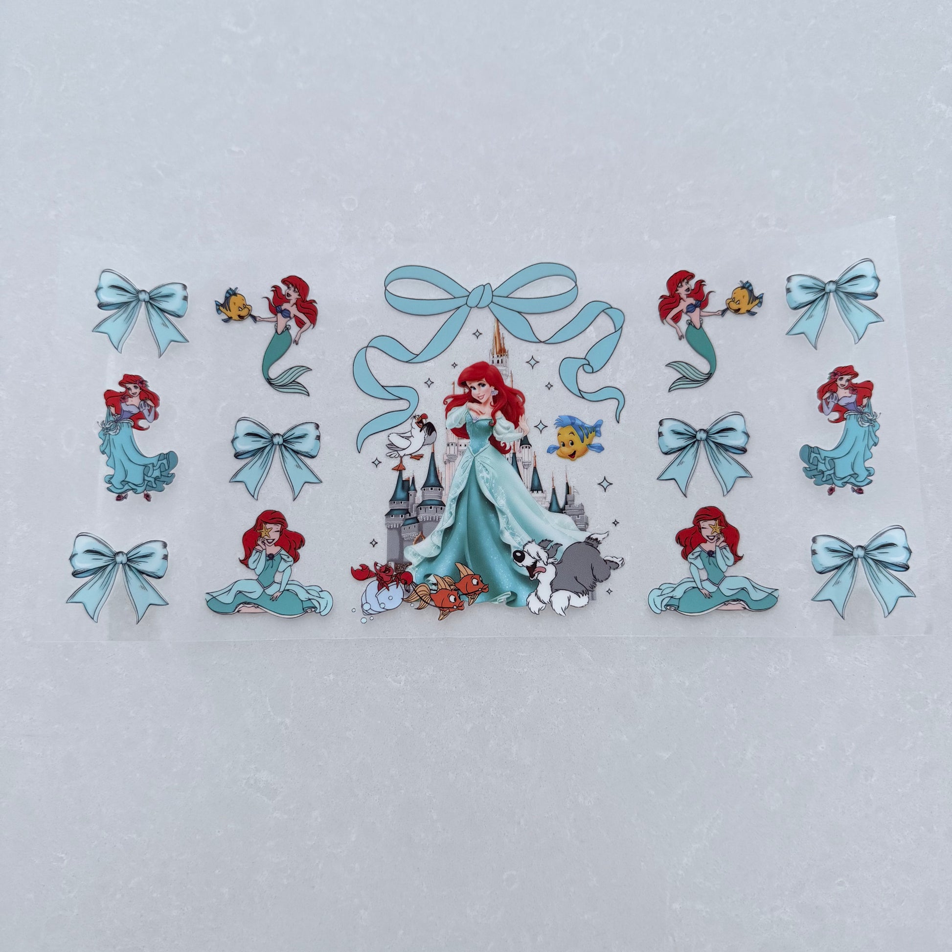 Single Sided UV DTF Wrap 16oz Tumbler Transfer (24cm x 11cm) mermaid blue bows