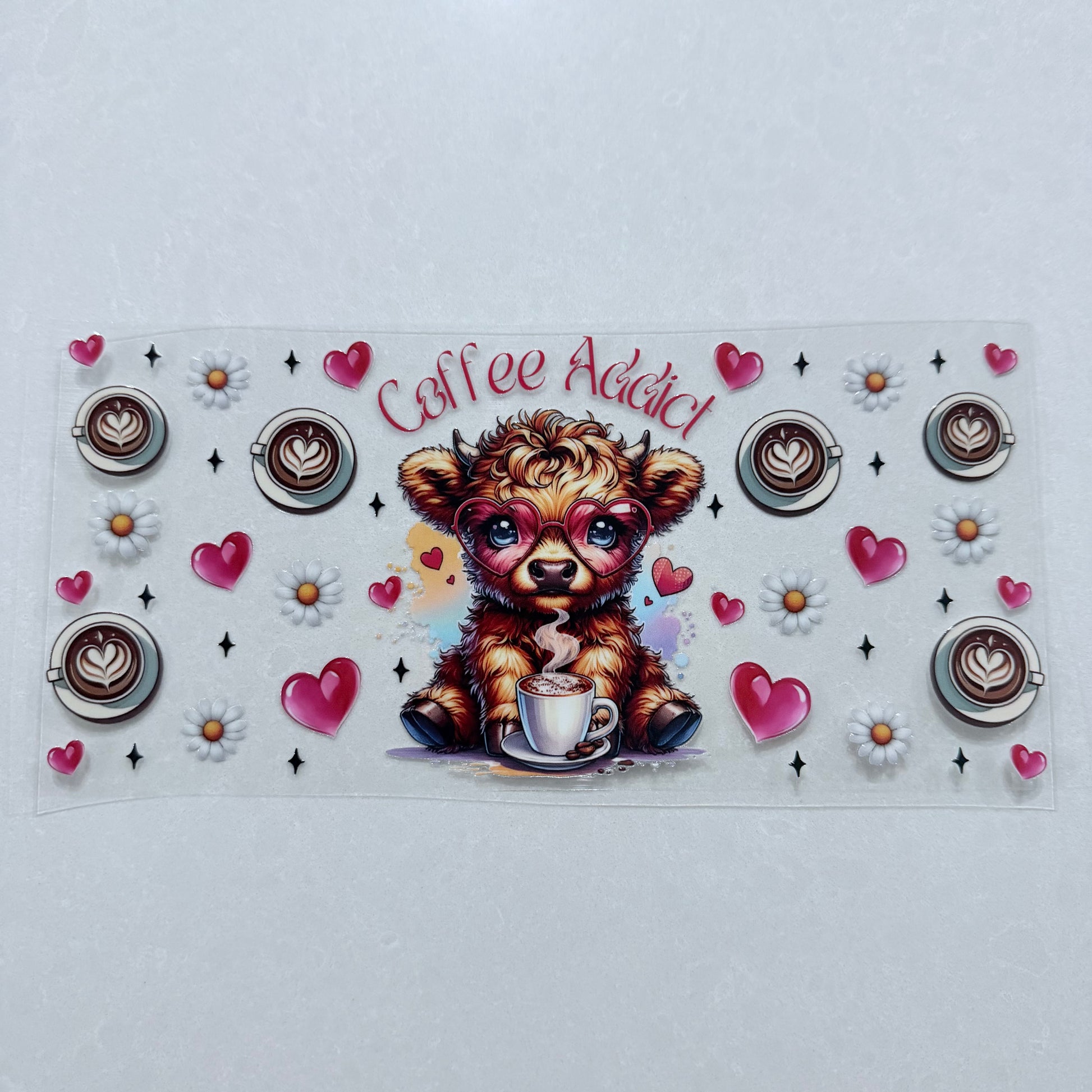 Single Sided UV DTF Wrap 16oz Tumbler Transfer (24cm x 11cm) coffee addict cow 2