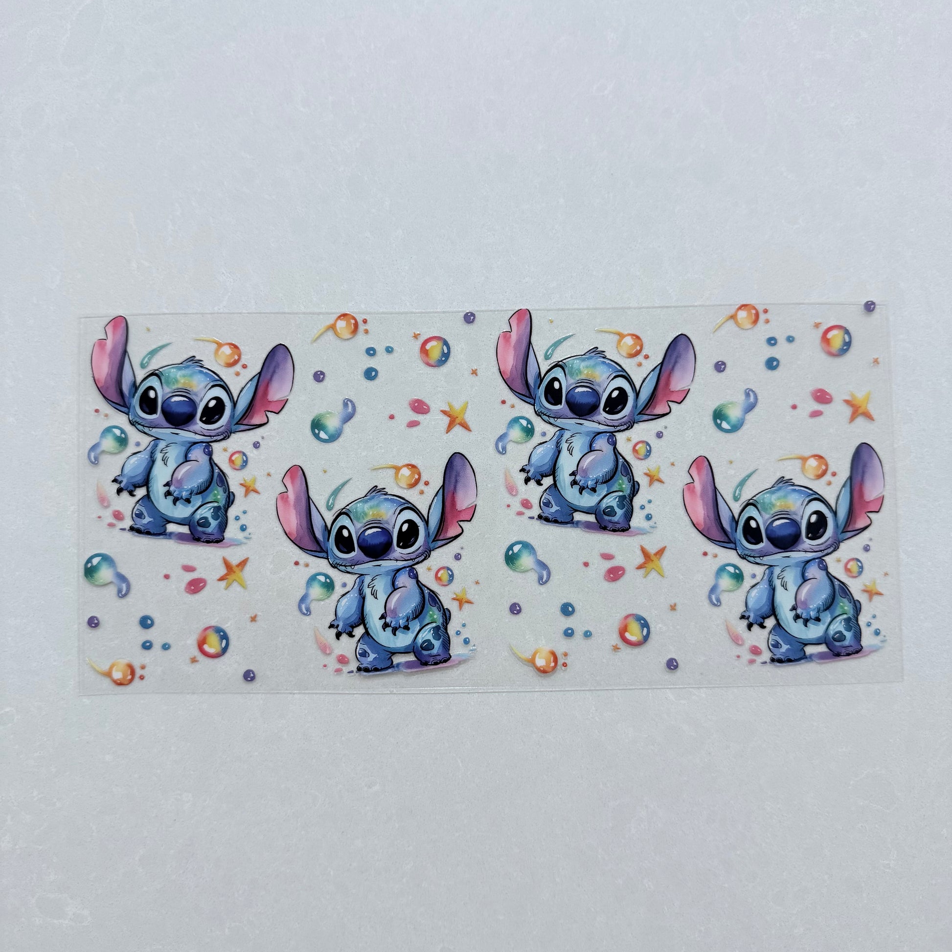 Single Sided UV DTF Wrap 16oz Tumbler Transfer (24cm x 11cm) blue alien bubbles colourful