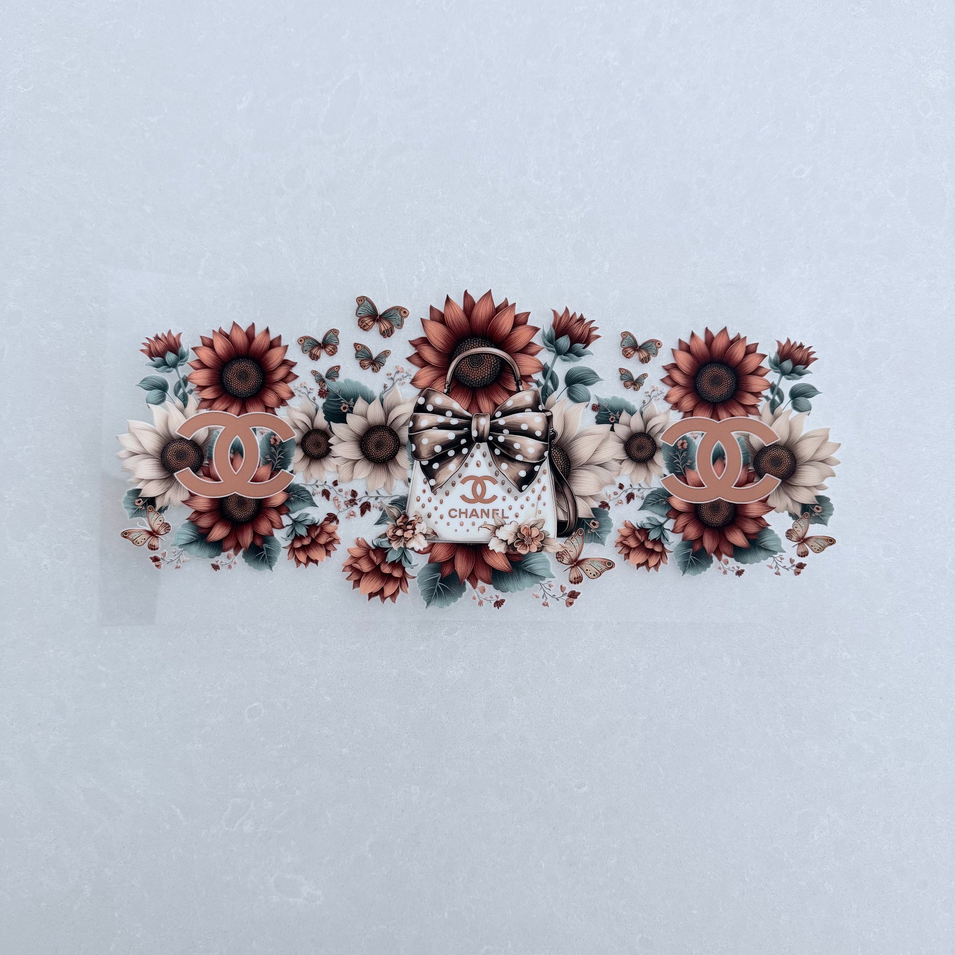 Single Sided UV DTF Wrap 16oz Tumbler Transfer (24cm x 11cm) designer CC handbag brown/cream sunflowers