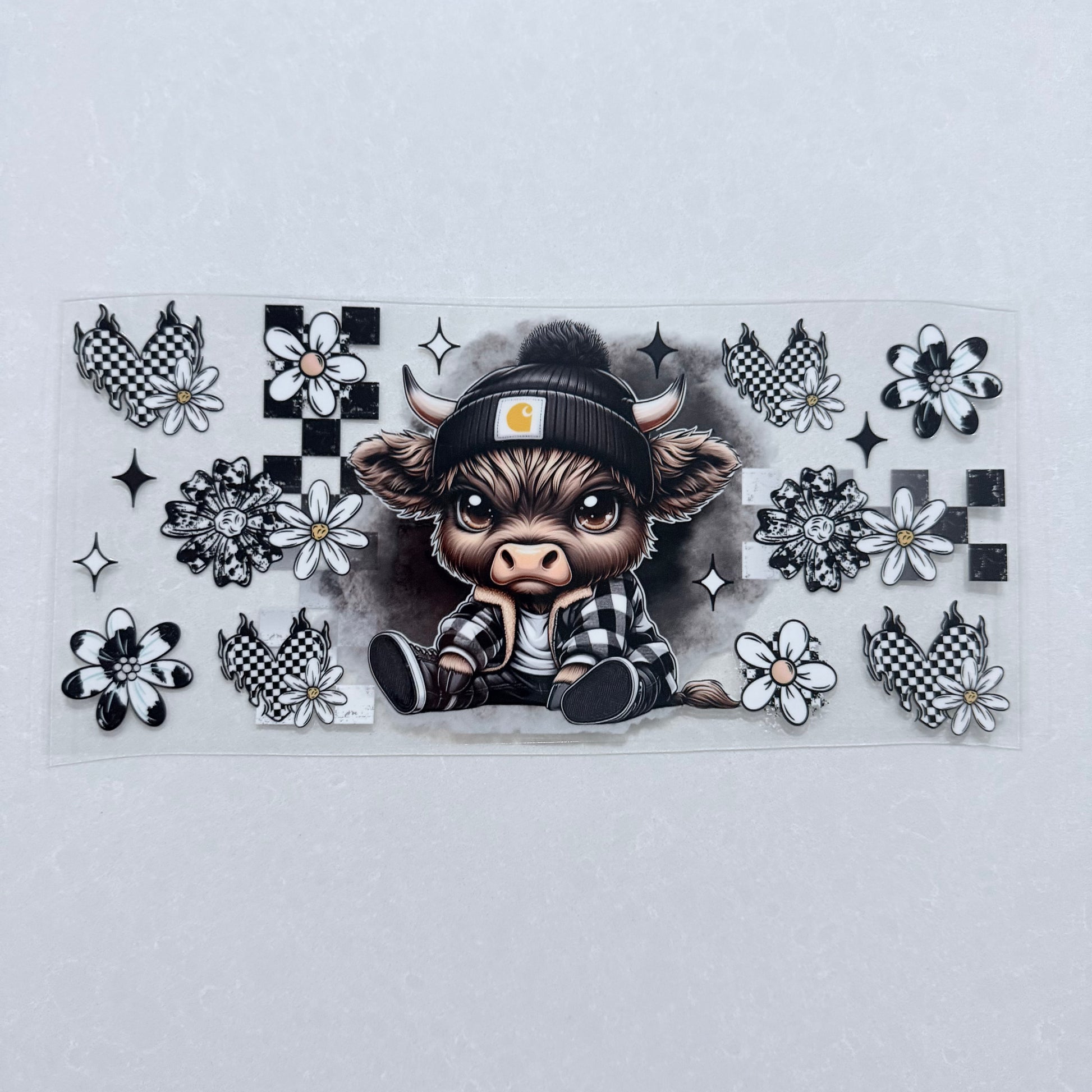 Single Sided UV DTF Wrap 16oz Tumbler Transfer (24cm x 11cm) highland cow gansta 1
