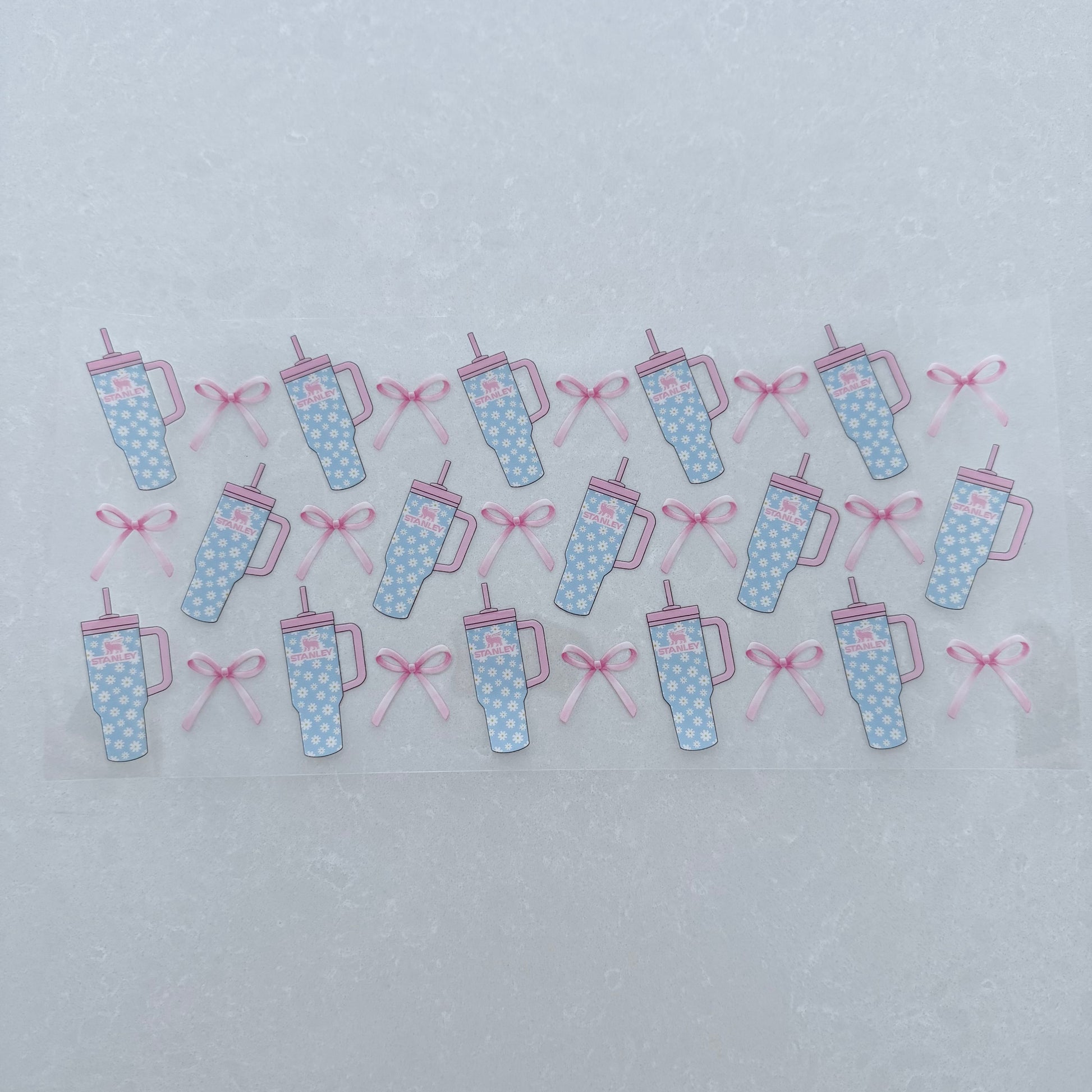 Single Sided UV DTF Wrap 16oz Tumbler Transfer (24cm x 11cm) tumbler daisies light blue