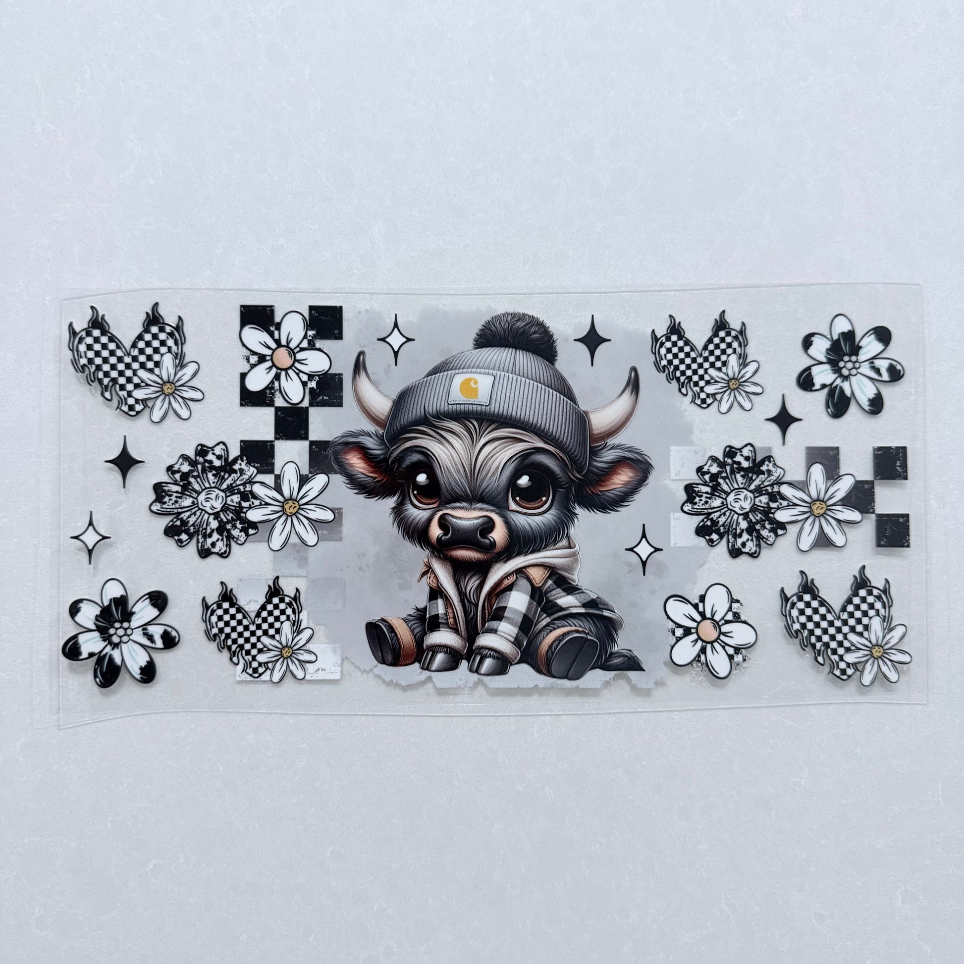 Single Sided UV DTF Wrap 16oz Tumbler Transfer (24cm x 11cm) highland cow gansta
