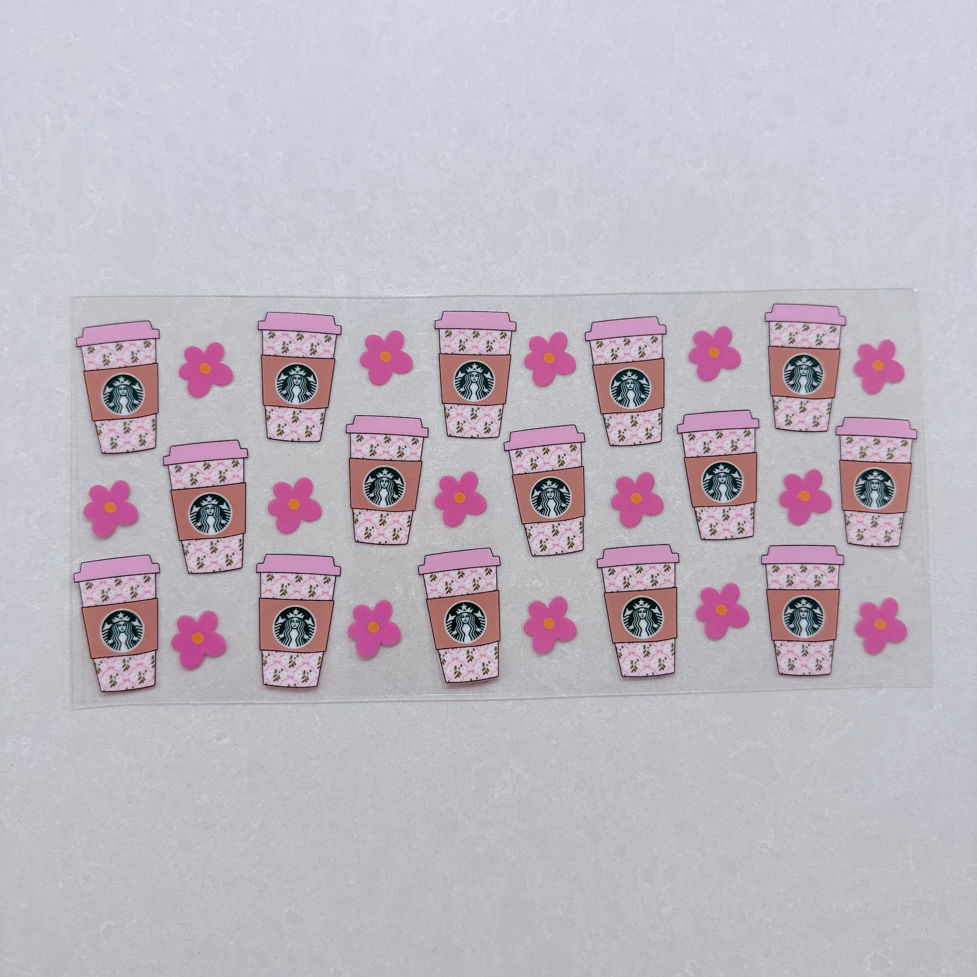 Single Sided UV DTF Wrap 16oz Tumbler Transfer (24cm x 11cm) pink starbies coffee cup
